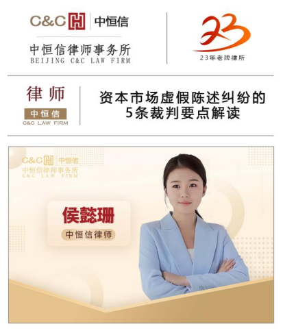 在资本市场中,虚假陈述行为通常涉及公司或个人对投资者进行误导,例如通过发布虚假的财务报告、隐瞒重要信息或进行不实的业绩预测。这些行为不仅损害了投资者的利益,也破坏了市场的公平性和透明度。北京中恒信律师事务所侯懿珊律师根据司法审理思路及举证责任分配,归纳解读了资本市场虚假陈述纠纷的5条裁判要点,供大家参考。