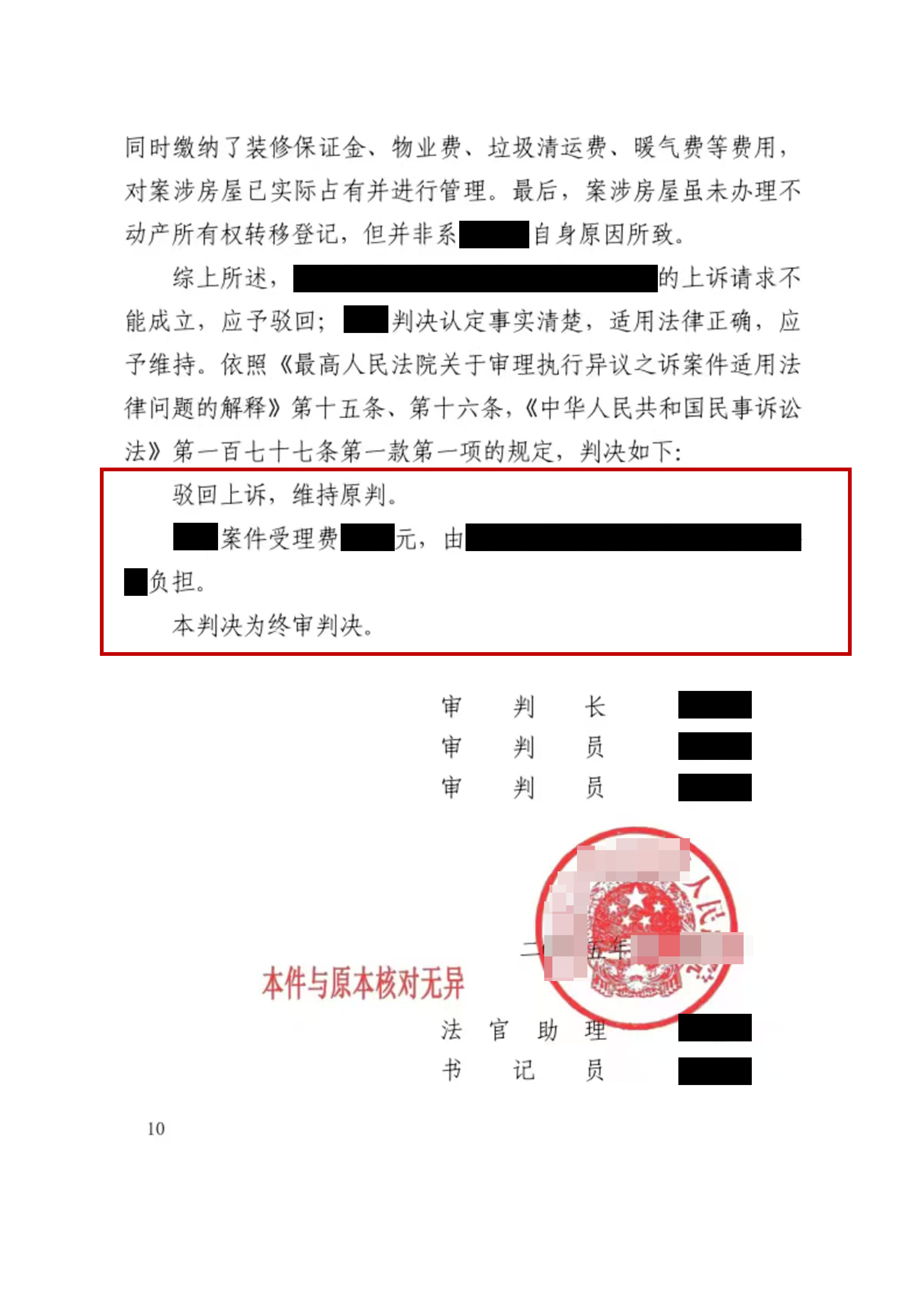终审落槌:法院采纳代理意见,维持原判胜局已定