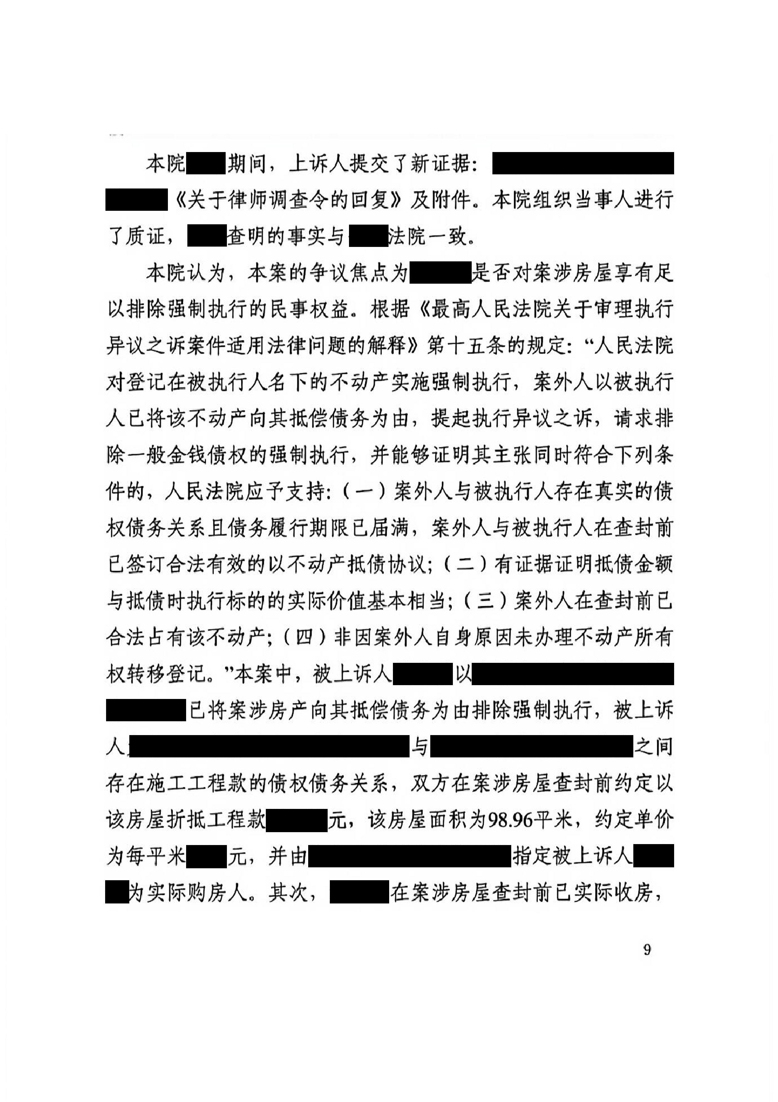 最终,太原市中级人民法院充分采纳了王英律师的代理意见,经审理认定,姚春香与开发商之间的工程款抵顶关系真实合法,其在查封前已合法占有案涉房屋,未办理过户登记并非其自身原因所致,对案涉房屋享有的民事权益足以排除强制执行,遂作出驳回上诉、维持原判的终审判决。