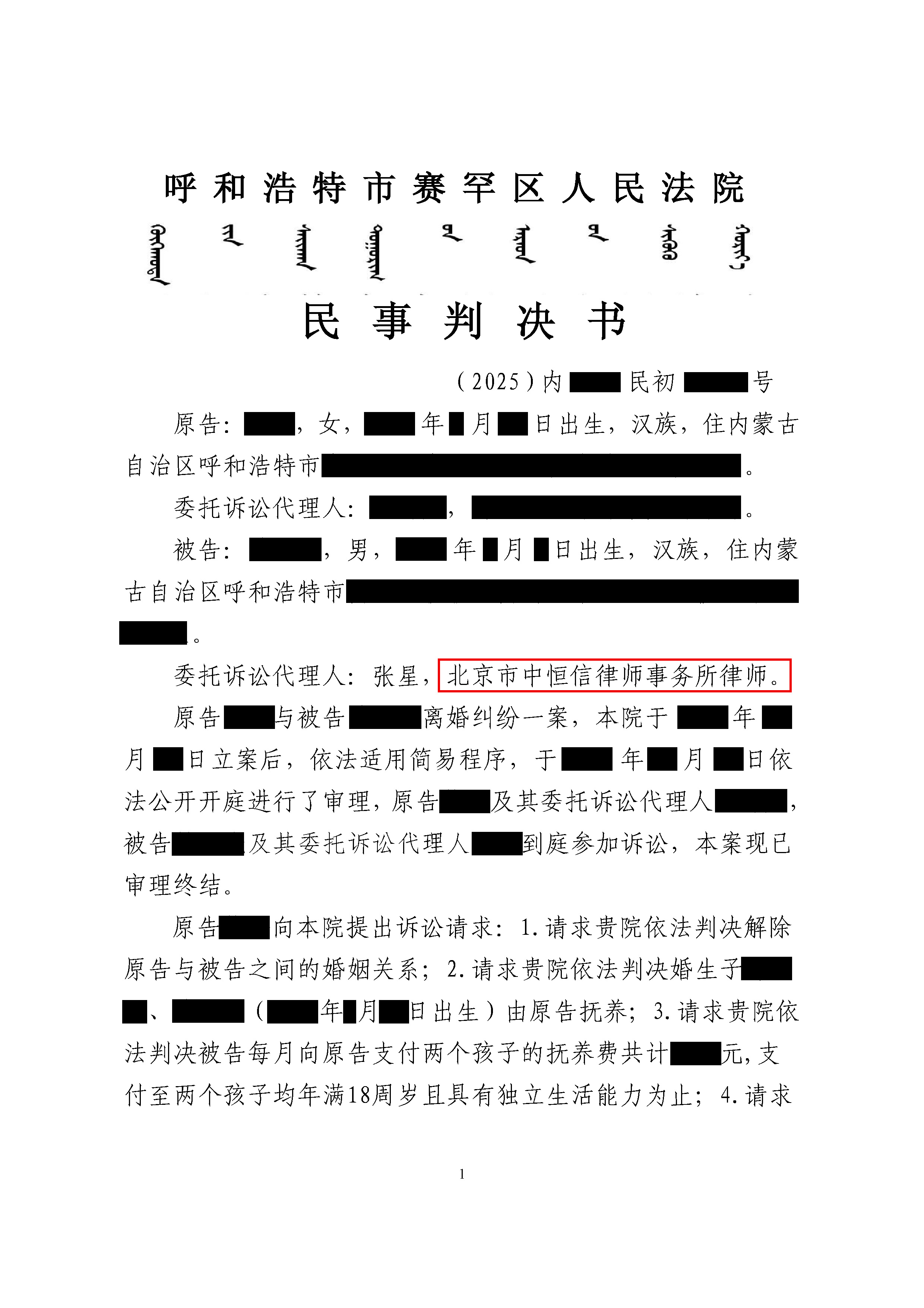 近日,呼和浩特市赛罕区人民法院就原告昝某与被告韩某离婚纠纷一案作出一审判决,不准予双方离婚。这一结果的背后,是北京市中恒信律师事务所张星律师在案件陷入被动局面时,凭借精准的专业研判、灵活的策略调整,为当事人守住家庭完整的不懈努力,彰显了婚姻家事纠纷处理中专业律师的核心价值。