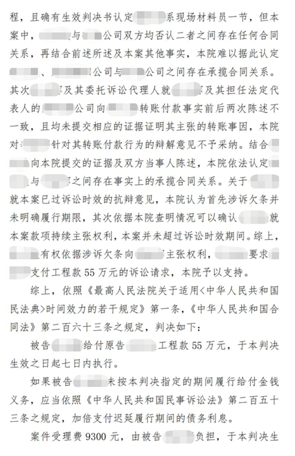 北京市顺义区人民法院作出判决:被告给付原告工程款55万元,于本判决生效之日起七日内执行。如果被告未按本判决指定的期间履行给付金钱义务,应当依照《中华人民共和国民事诉讼法》第二百五十三条之规定,加倍支付迟延履行期间的债务利息。案件受理费9300元,由被告负担,于本判决生效之日起七日内交纳。