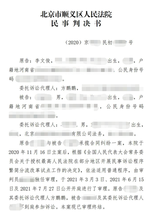 北京市中恒信律师事务所方鹏鹏律师代理原告出庭参加庭审并发表代理意见:被告辩称本案原被告主体均不适格,被告及其委托诉讼代理人就被告及其担任法定代表人的公司向原告转账付款事实前后两次陈述不一致,且均未提交相应的证据证明其主张的转账事因。结合原告提交的证据及双方当事人陈述,应当依法认定原告与被告之间存在事实上的承揽合同关系。关于被告就本案已过诉讼时效的抗辩意见,首先涉诉欠条并未明确履行期限,其次实际情况可以确认原告就本案款项持续主张权利,本案并未超过诉讼时效期间。综上,原告有权依据涉诉欠条向被告主张权利。