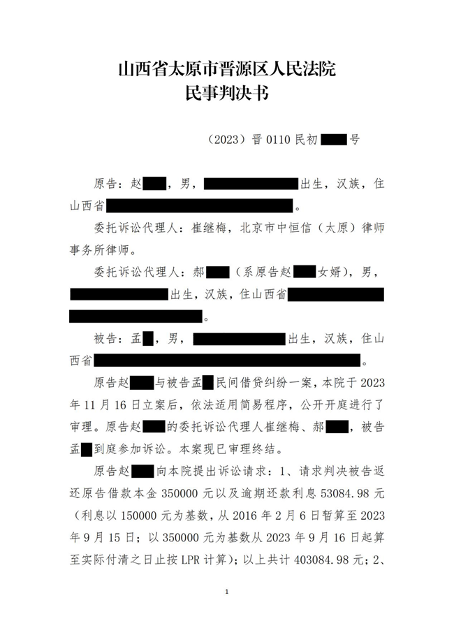 本案中,原被告系朋友关系,被告因资金周转困难,向原告3次借款,并出具借条保证书,然被告归还部分借款后,剩余借款经原告多次催要均未果。综上,为维护原告合法权益,原告依法诉至本院。在中恒信律师事务所崔继梅律师的帮助下,原告胜诉,法院判决被告限期归还原告剩余借款及利息。