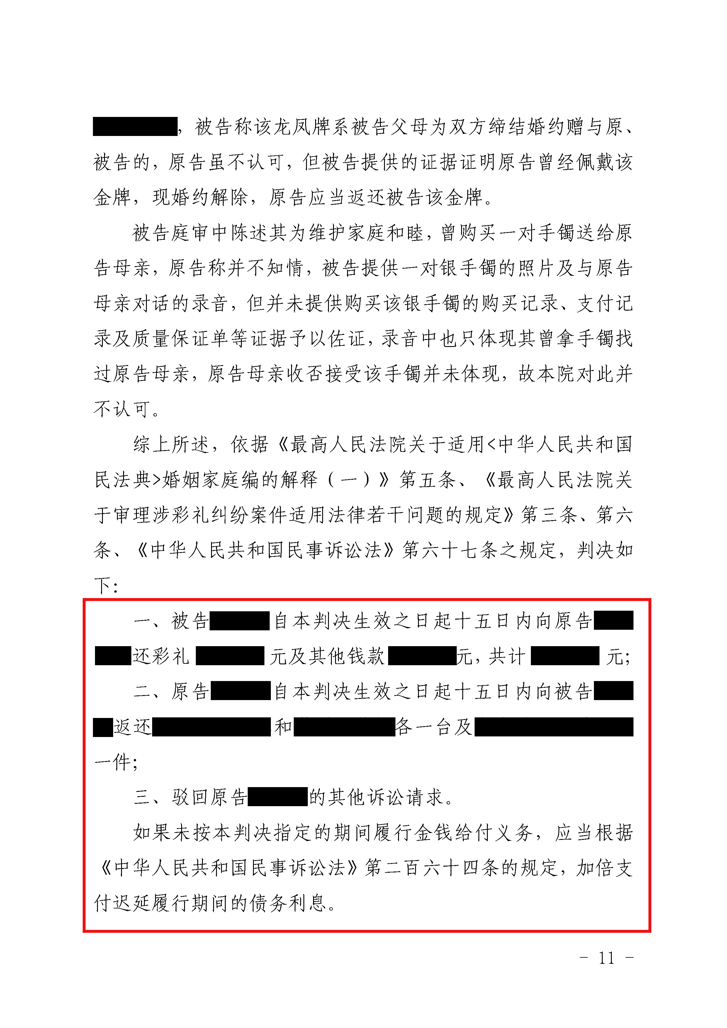 最终,法院充分采纳了陈少霞律师的代理意见,认定双方未办理结婚登记手续,原告要求返还彩礼的请求于法有据,同时结合共同生活时间、款项使用情况等因素,判令被告返还彩礼及其他钱款。此外,法院驳回了被告的多项反诉主张,进一步印证了陈少霞律师办案思路的精准性。