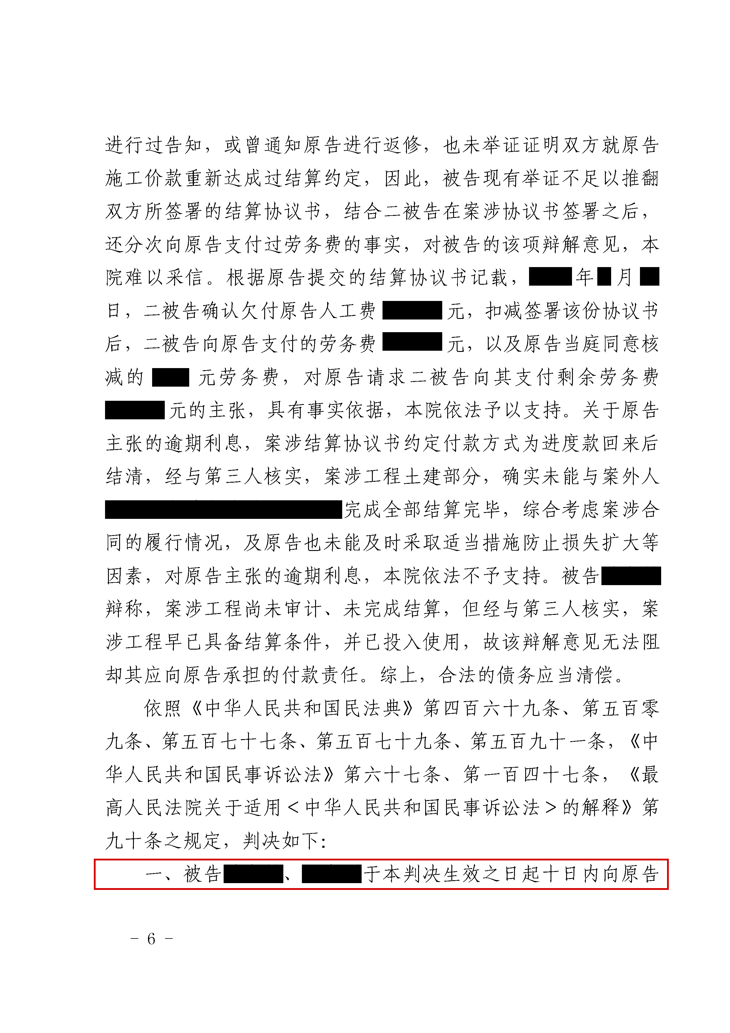 一方面,为夯实事实关系,律师整合施工、沟通及付款记录形成完整证据链;针对质量抗辩,精准指出被告证据不足、无事后异议的问题,驳斥其主张;