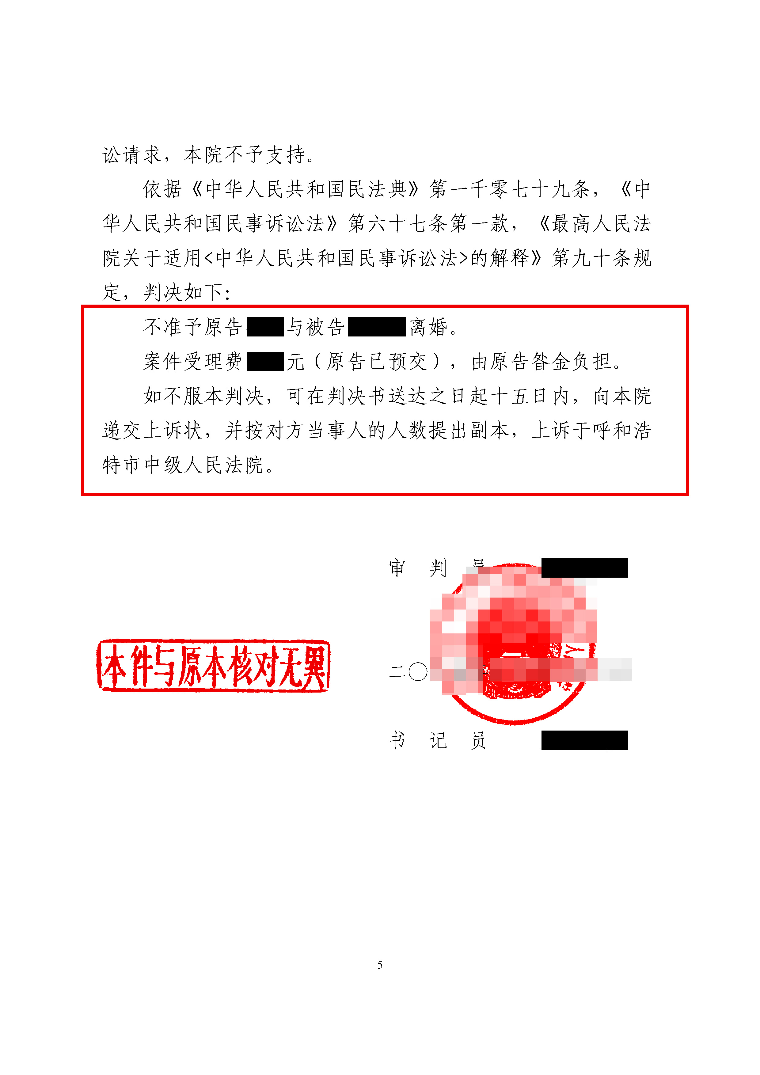 最终,法院采纳了张星律师的核心辩护意见,认定原告提交的证据不足以证明双方夫妻感情彻底破裂,判决不准予原被告离婚。这一判决不仅守住了被告的家庭完整,更为两名年幼子女保留了完整的家庭环境。